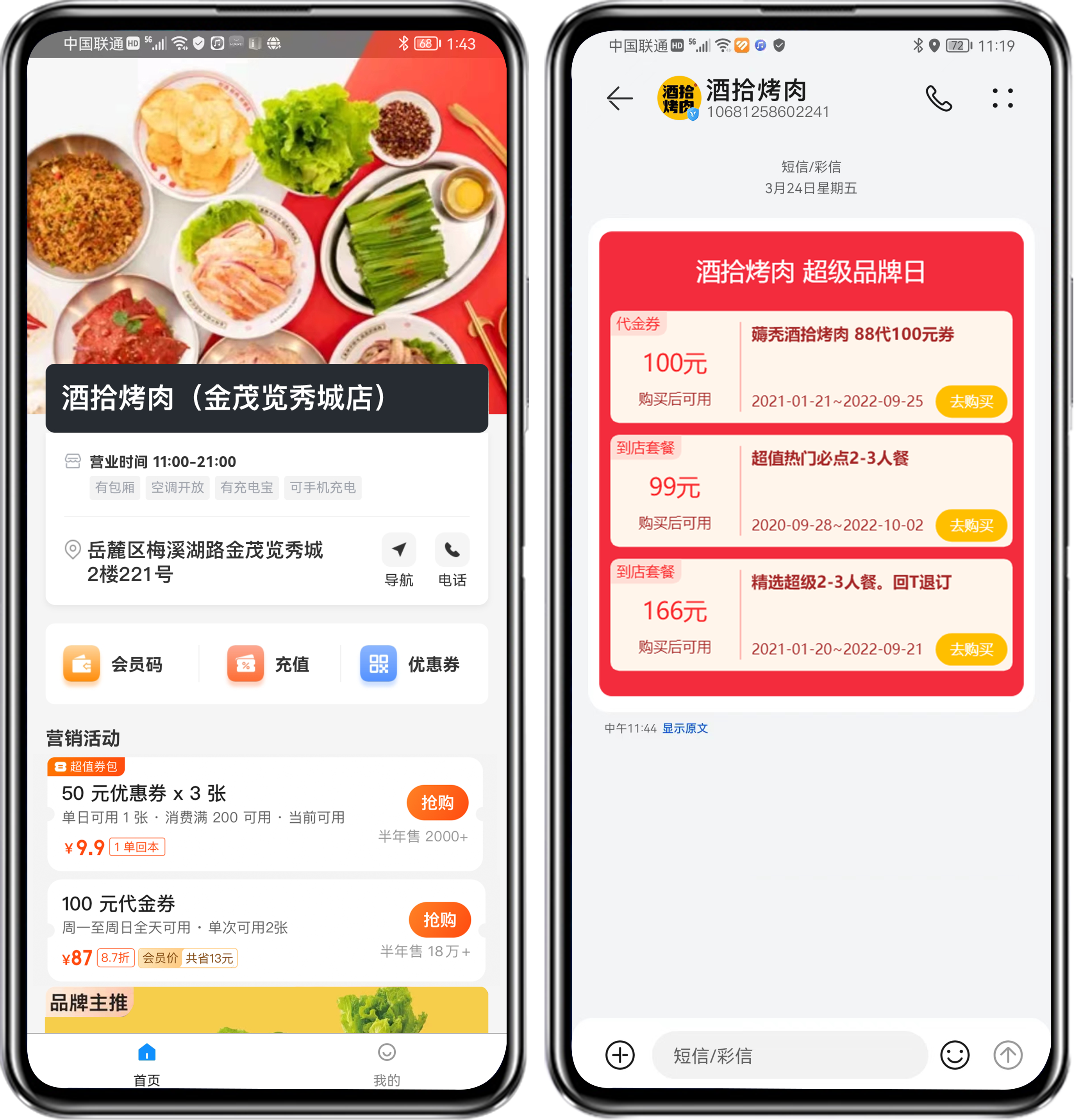 后台自定义5G消息界面及商户界面,即可每月自动向会员推送商户活动信息至会员手机端口,高效建立品牌闭环会员体系。